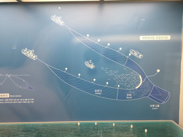La pêche à la senne représente la plus grande partie de la pêche intérieure coréenne et cible principalement les anchois. Ce type de pêche a commencé avec la senne de plage, où le filet était déployé à partir du rivage et qui n’est plus pratiqué à Yeongdo, puis, s'est développé en senne en bateau amarré.